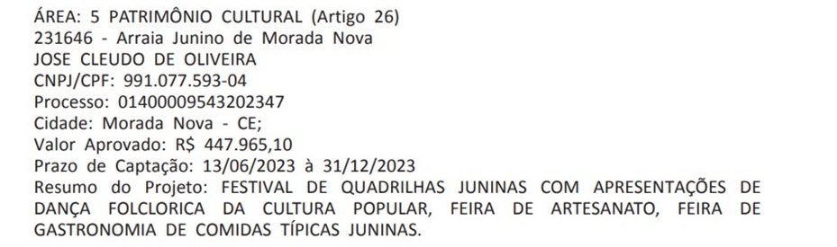 - ATUAÇÃO COMO PARECERISTA APRECIADOR DO MÉRITO CULTURAL NOS PROJETOS CONTEMPLADOS NA LEI PAULO GUSTAVO NO MUNICÍPIO DE JAGUARUANA NO ANO DE 2023.