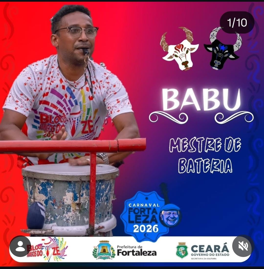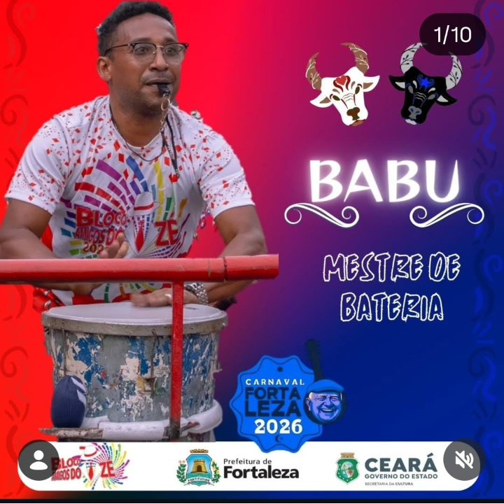 Babu é mestre de bateria da Associação Carnavalesca Amigos do Zé, na comunidade Bela Vista – Pici, em Fortaleza/CE, atuando há aproximadamente 8 anos na condução musical e formação de ritmistas dentro do bloco.Ao longo de sua trajetória, desenvolve um trabalho comunitário voltado à cultura popular e à inclusão social de crianças e adolescentes da comunidade. De forma voluntária e não formal, ensina percussão para jovens interessados em participar da bateria carnavalesca, utilizando a música como ferramenta de incentivo cultural e de prevenção à vulnerabilidade social, oferecendo uma alternativa à ociosidade, à fome e à influência da criminalidade presente no território.