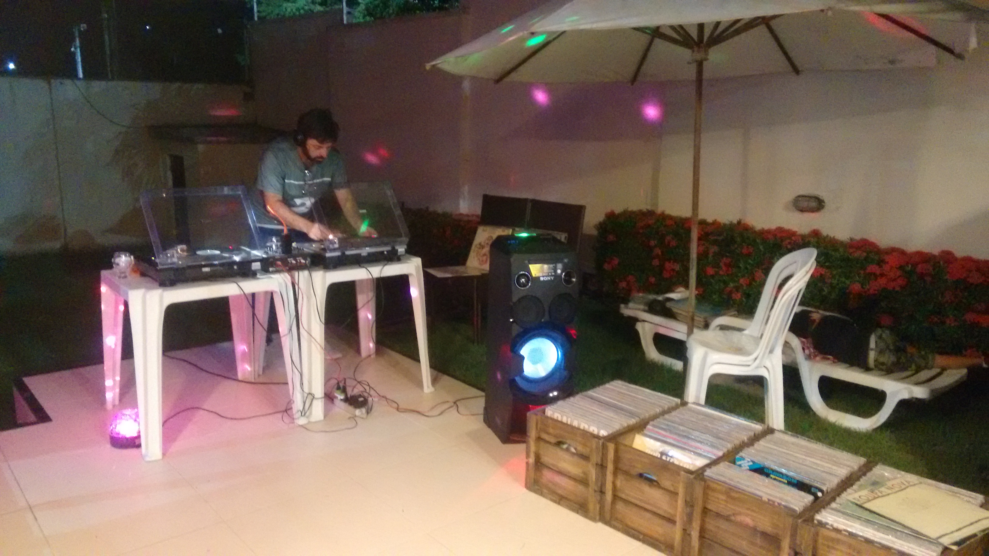 Temos um acervo de quase 6 mil discos dos mais variados estilos musicais, além de vitrolas profissionais, mixer, caixas de som e luz.