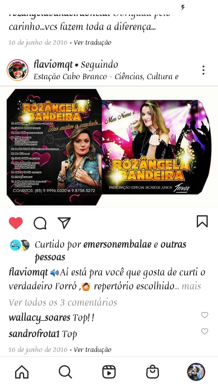 O COLETIVO ROZÂNGELA BANDEIRA E BANDA SURGIU EM 2008 DESDE QUE A VOCALISTA SAIU DA BANDA PAINEL DE CONTROLE E DECIDIU INVESTIR EM CARREIRA SOLO. COM PRODUÇÕES E APRESENTAÇÕES EM TODO TERRITÓRIO CEARENSE, COM UM REPERTÓRIO DIVERSIFICADO DE MUSICA POPULAR BRASILEIRA E REGIONAL. APRESENTANDO EM EVENTOS COORPORATIVOS, BARZINHOS, BARRACAS DE PRAIA, EVENTOS JUNINOS, FESTAS PARTICULARES, CARNAVAIS, ETC.Vídeos
